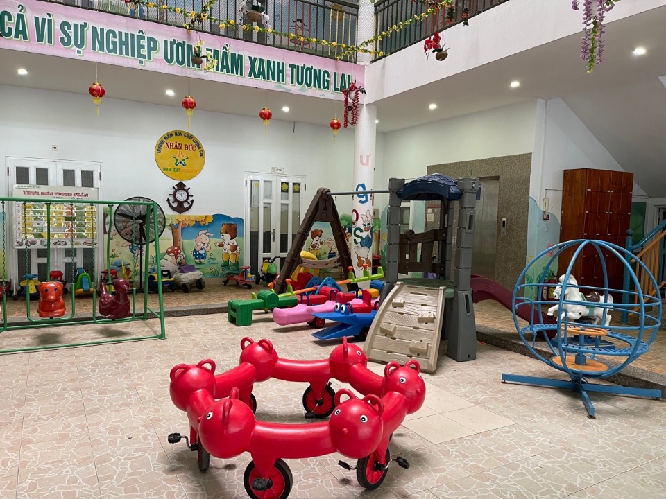 Phòng học, sân chơi bảo đảm an toàn cho trẻ, nhiều sân chơi hấp dẫn cho từng độ tuổi.
